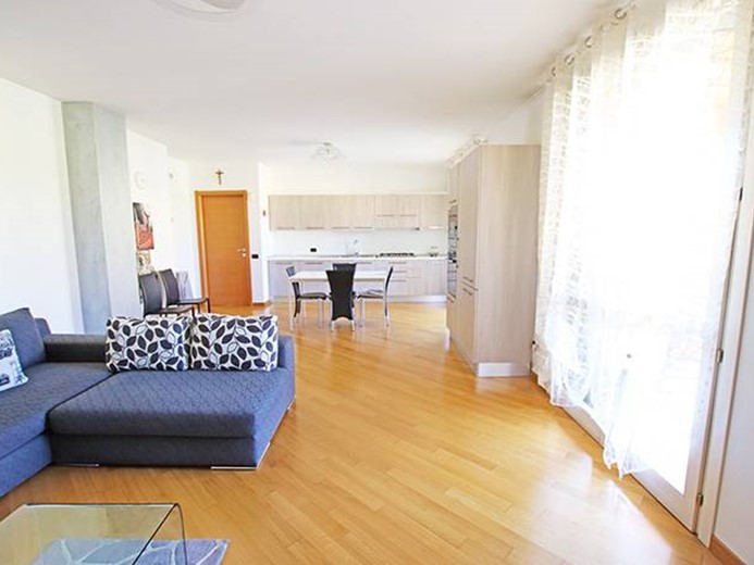 Internamente l'immobile è composto da grande soggiorno con accesso al terrazzo coperto dotato di zona tv con divani e consolle, zona pranzo ed ampia zona cucina open space, 2 camere da letto di ampie dimensioni, di cui una con accesso a balcone privato e l'altra con cabina armadio interna, ampio bagno finestrato con vasca da bagno e doccia, lavanderia con wc di servizio.