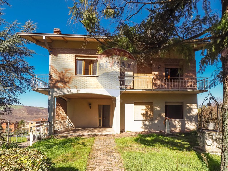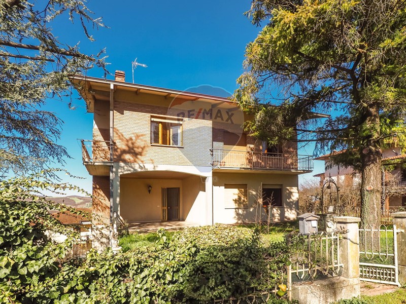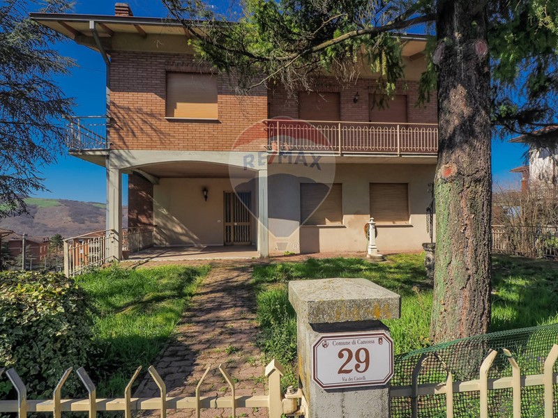 Villa indipendente costituita da due unità immobiliari collegate internamente con giardino, doppio garage, tre cantine e sottotetto a Canossa (RE)