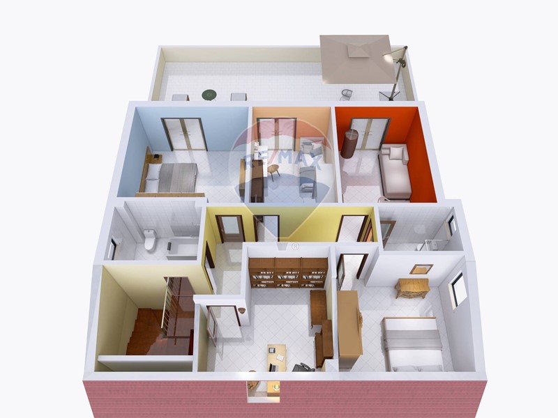 Al piano superiore, circa 110 mq netti utili interni, mansardato, quattro camere da letto tre delle quali con accesso diretto a un terrazzo esposto a sud di oltre 60 mq e uno studiolo dove coltivare passioni o lavorare da casa in totale tranquillità. Due bagni completano il livello, offrendo comfort e funzionalità per tutta la famiglia.