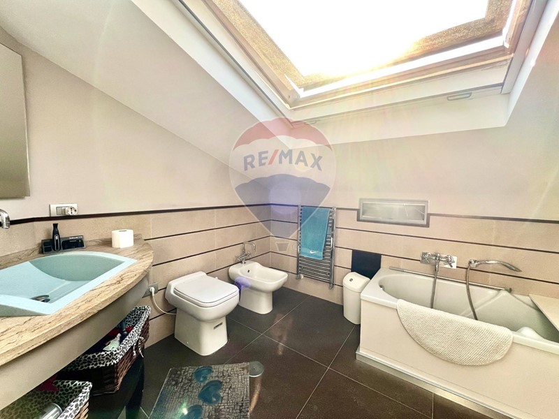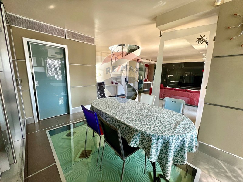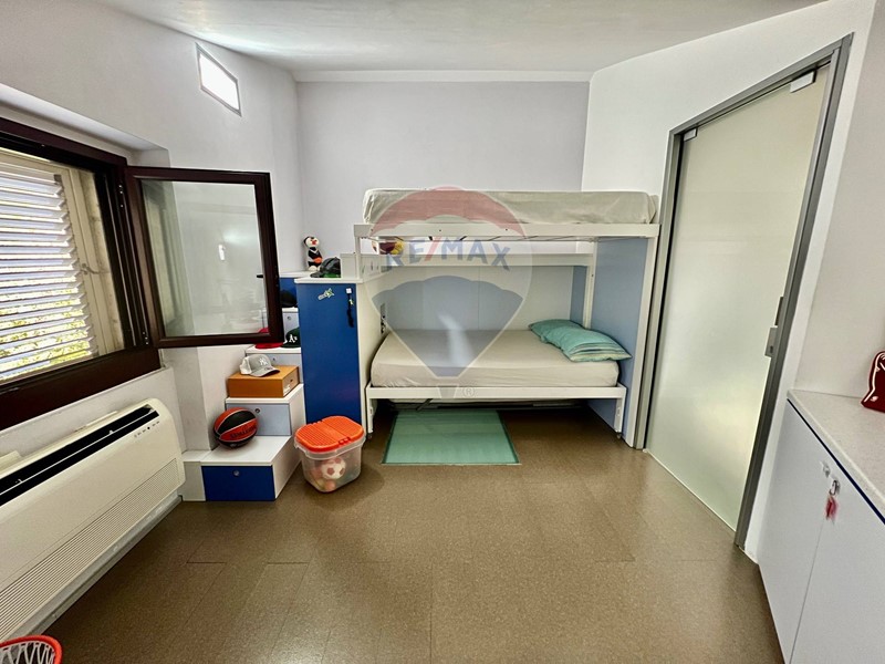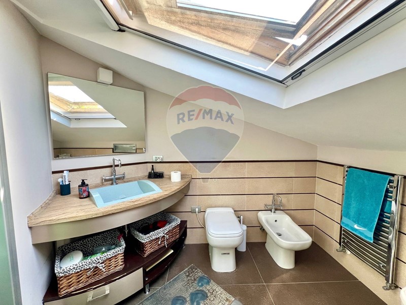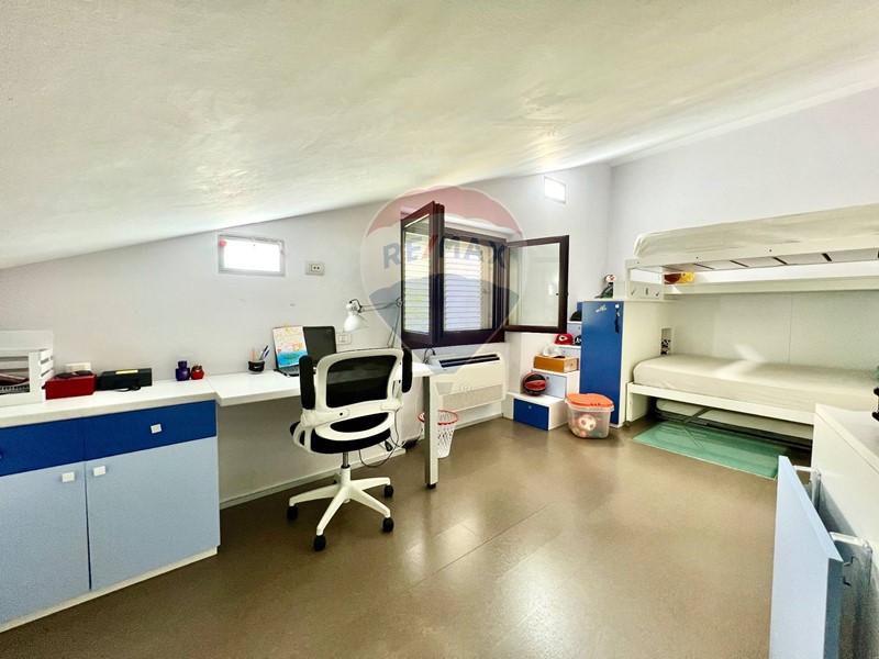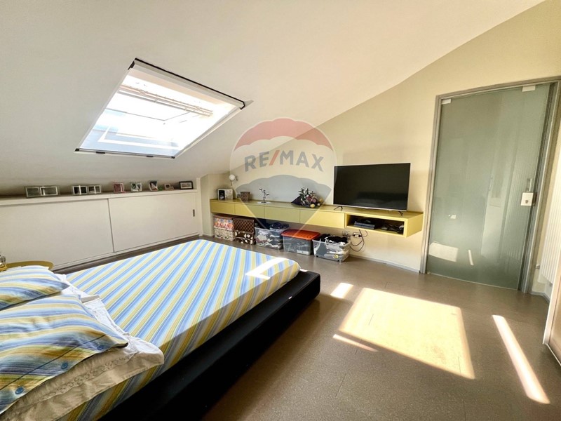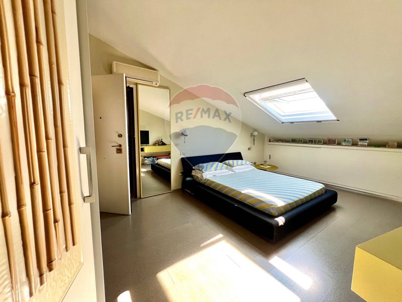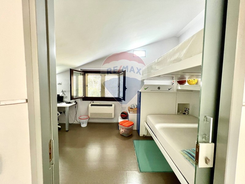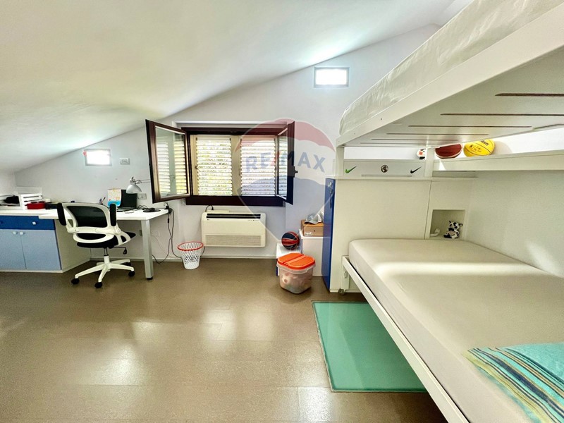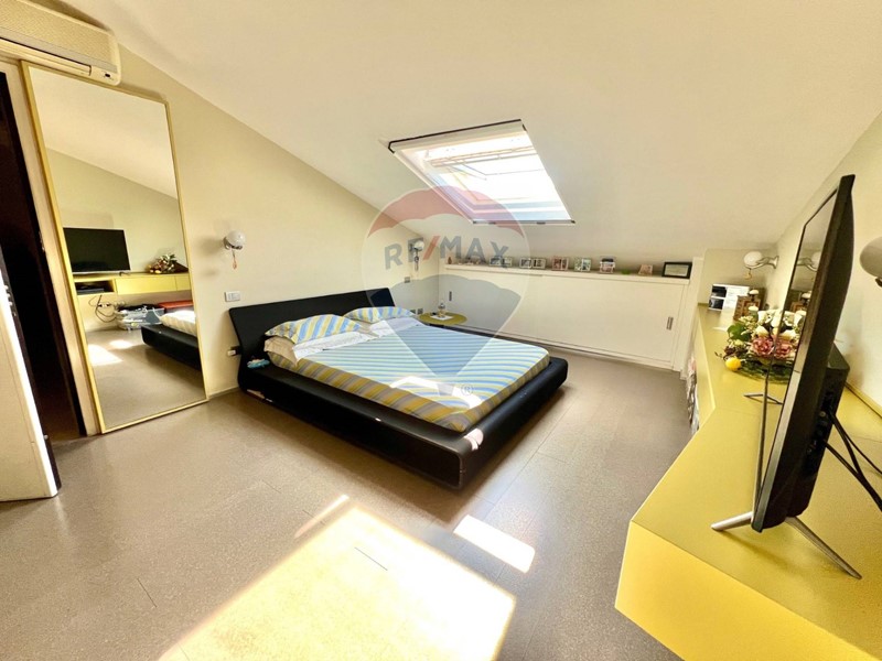 Una suggestiva scala a chiocciola di design conduce al piano superiore, dove si sviluppa la zona notte composta da una confortevole camera matrimoniale, una cameretta ed un secondo bagno finestrato, dotato sia di vasca che di doccia, pensato per il massimo comfort.