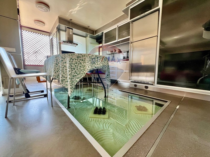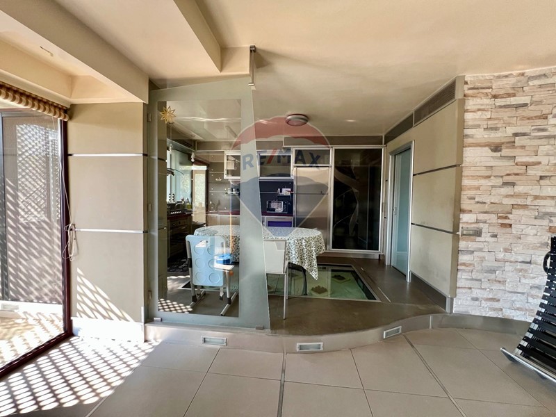 Il primo livello accoglie con un ampio e accogliente salone, arricchito da una moderna cucina a vista, impreziosita da una particolare pavimentazione interrata con sabbia che dona carattere e unicità allambiente. Completa il piano un bagno con doccia ed una spaziosa balconata, perfetta per momenti di relax.