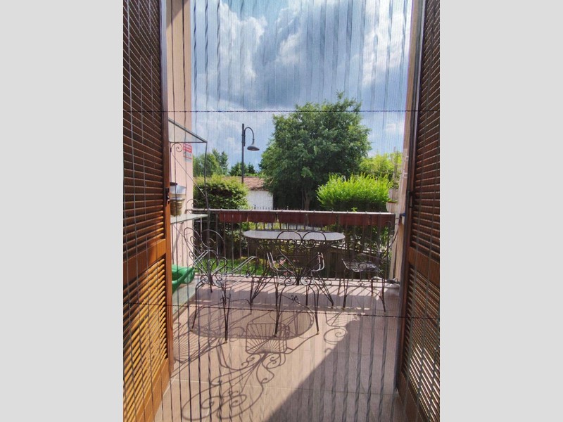 Il bagno, finestrato e completo di doccia e lavatrice, garantisce praticità e comfort. La proprietà si completa con un box doppio in lunghezza, ideale per chi necessita di ampi spazi di parcheggio.