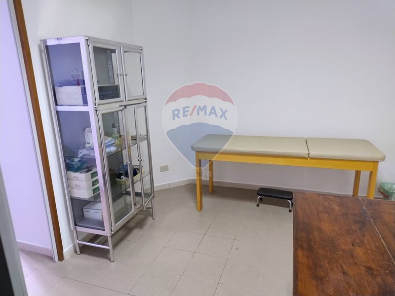 La prima unità, con ingresso da porta vetrata su strada, si apre su una sala dattesa/ingresso, da cui si accede a due stanze uso studio.