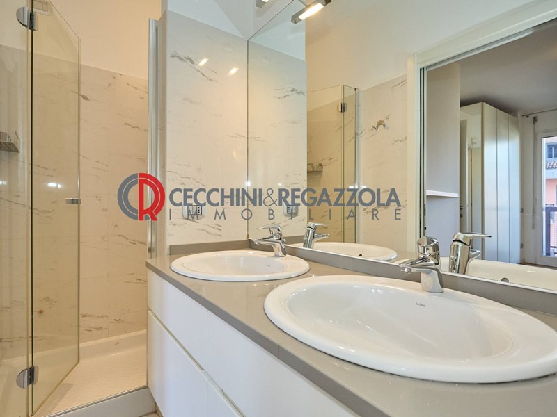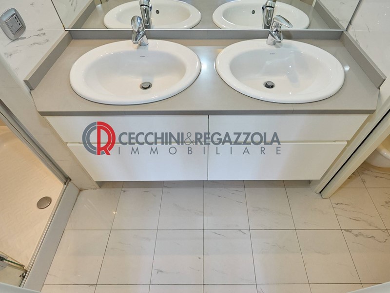 L'appartamento, in condizioni eccellenti e caratterizzato da una splendida luminosità, è così composto: ingresso, ampio soggiorno con accesso al terrazzo/loggia di mq. 12 circa, perfetto per pranzi e cene allaperto, collegato anche alla cucina abitabile con adiacente terzo bagno/lavanderia; zona notte, con due bagni, due camere da letto, di cui una con bagno en suite e balcone privato; pratico ripostiglio e cantina di pertinenza. Superficie commerciale pari a mq. 120 circa; superficie catastale mq. 114.
