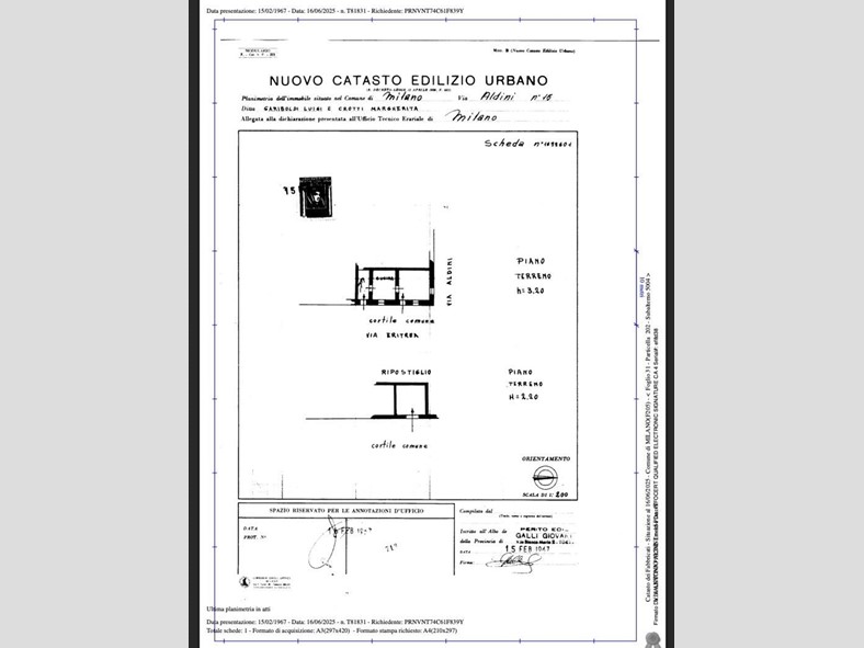 In Comune di Milano (MI) - Via Antonio Aldini n. 15, appartamento ad uso abitazione categoria A/3, posto al piano terra, costituito da un locale e servizio. Categoria A3 - Abitazione di tipo economico, classe 2, consistenza 1,5 vani, totale 25 mq circa.