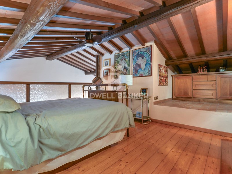 Allesterno la proprietà si estende su un terreno di circa 1600 mq, giardino privato arricchito da un grazioso laghetto ornamentale, spazi verdi curati e angoli pensati per il relax allaria aperta. A rendere latmosfera ancora più suggestiva contribuisce un ruscello che attraversa la proprietà, richiamo autentico alla sua originaria funzione di mulino e dettaglio unico nel suo genere.