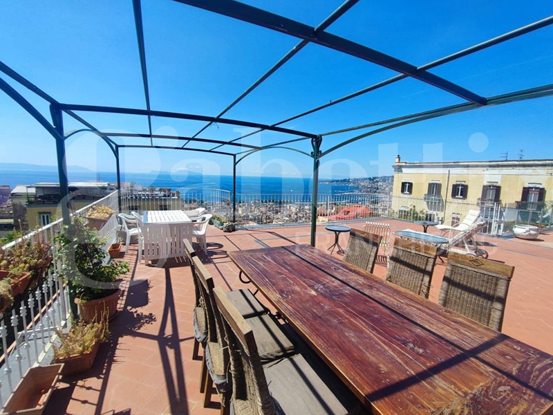 Uno dei punti forti di questo appartamento è il terrazzo a livello panoramico, da cui si può godere di una vista mozzafiato sulla città di Napoli e l'isola di Capri . Un luogo perfetto per rilassarsi, organizzare cene all'aperto o semplicemente ammirare i colori del tramonto sul Golfo di Napoli.