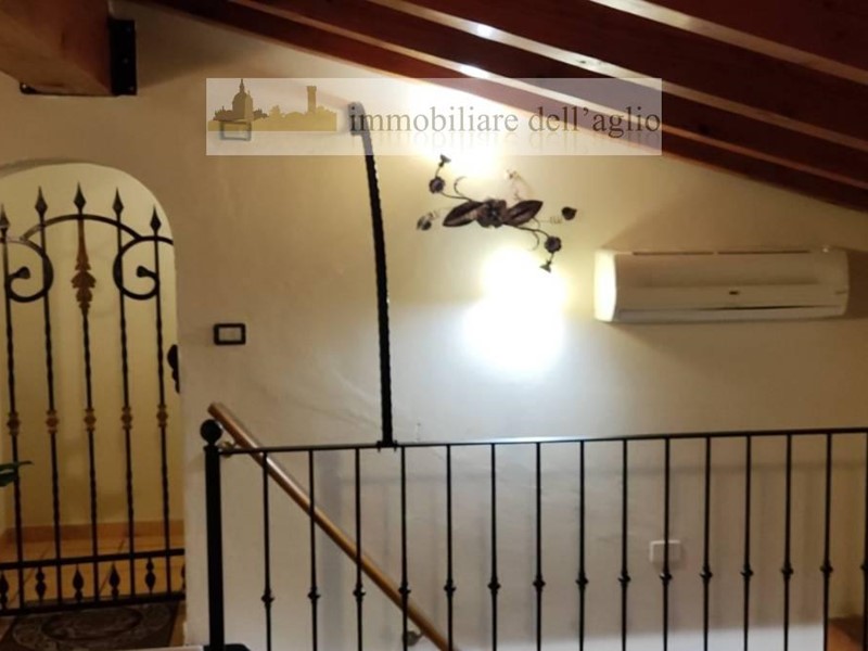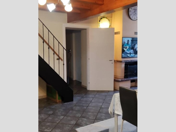 Situato al primo ed ultimo piano, l'immobile colpisce per gli ampi spazi e il calore degli ambienti. La zona giorno si apre su un'accogliente sala con camino e angolo cottura, impreziosita da un soppalco con pratico ripostiglio. La zona notte offre due camere matrimoniali, di cui una con bagno privato e accesso diretto a una loggia coperta; il secondo bagno, di generose dimensioni, dispone di una rilassante vasca.