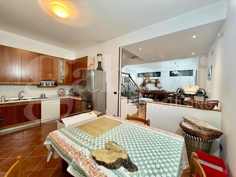 La villa si sviluppa principalmente al piano rialzato, dove zona giorno e zona notte convivono armoniosamente sullo stesso livello: un ampio soggiorno luminoso accoglie la famiglia e gli ospiti, la cucina abitabile è perfetta per chi ama cucinare e condividere i pasti, mentre due camere da letto e un bagno spazioso garantiscono praticità e comfort quotidiano. Gli ampi patii esterni ampliano lo spazio abitativo, diventando vere e proprie zone da vivere nelle belle giornate, per pranzi all'aperto o momenti di relax immersi nel verde.
