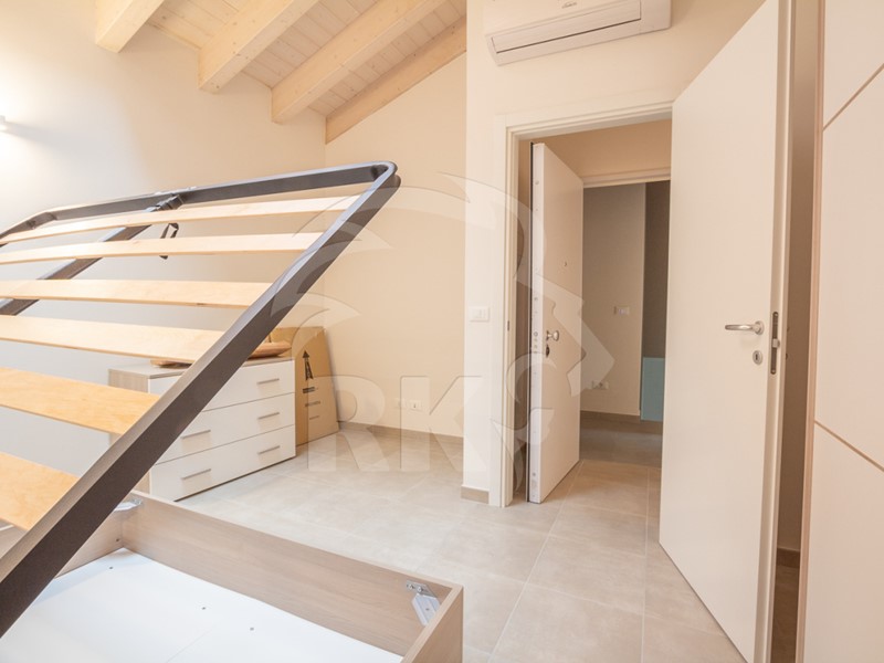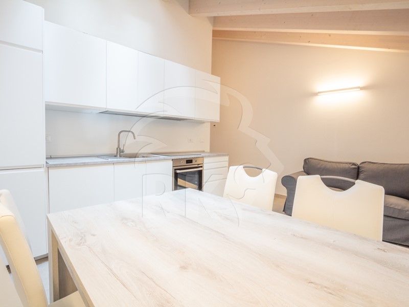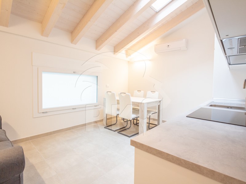 PARTE INTERNA - L'immobile si sviluppa al piano primo ed ultimo, con accesso dall'ingresso condominiale. Le travi a vista e la modernità degli arredi lo rendono accogliente, funzionale ed elegante. Si entra nella zona giorno con angolo cottura, la cucina è dotata di induzione, lavastoviglie, forno elettrico e frigo/freezer, camera matrimoniale con letto contenitore e bagno con doccia e lavatrice.