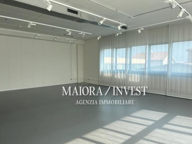 SAN BENEDETTO DEL TRONTO - Località Porto d'Ascoli - In contesto commerciale ampio locale open space adatto per Studio, Uffici Show Room di circa 170 mq posto al primo e ultimo piano servito da ascensore. L'immobile completamente rifinito con ottimi materiali dispone di un unico vano aperto da dividere secondo le proprie esigenze oltre a bagno con antibagno. L'unità immobiliare è fornita di impianto di climatizzazione di ultima generazione, impianto elettrico a norma e illuminazione a led. Immobile pronto all'uso. Ubicato in ottima e comoda posizione con parcheggio a disposizione. Sono richieste garanzie. Codice riferimento 1116. Agenzia Immobiliare Maiora/Invest.