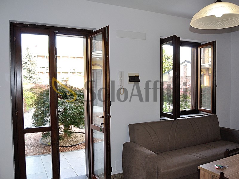 All'interno di un complesso residenziale che si sviluppa a corte, con giardino comune e box auto, si trova questa soluzione arredata.