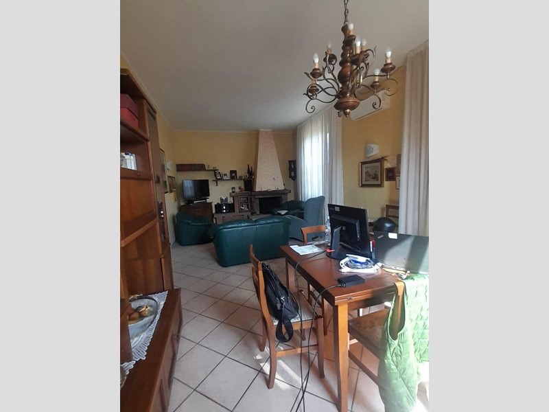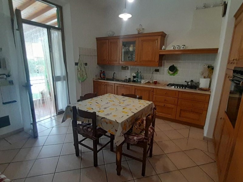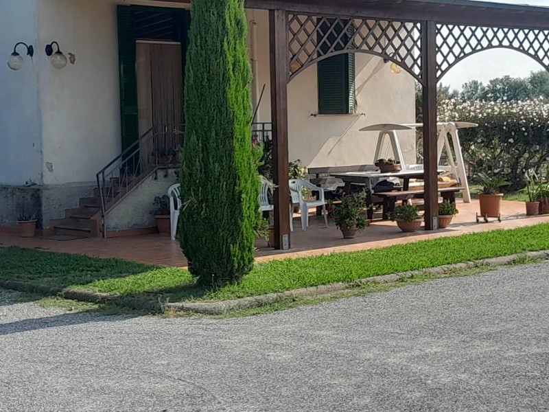 La casa è composta al piano terra da ingresso, che ci conduce ad un ampio disimpegno dove si trova la zona giorno, cucina abitabile con porta finestra e accesso diretto al portico di circa 50 mq e al giardino; salone doppio molto luminoso con tre finestre e camino; bagno finestrato completo con doccia; ripostiglio e camera matrimoniale.