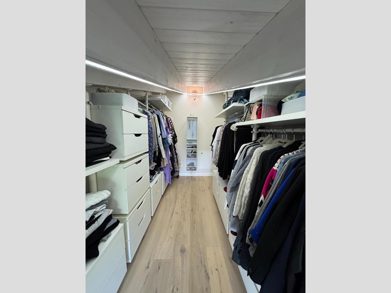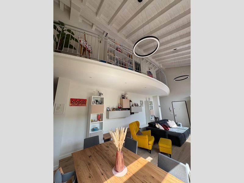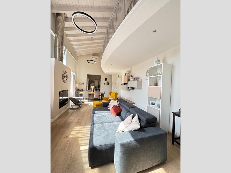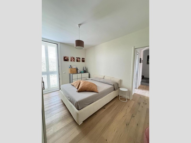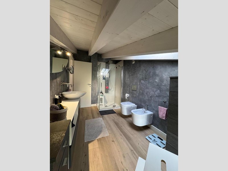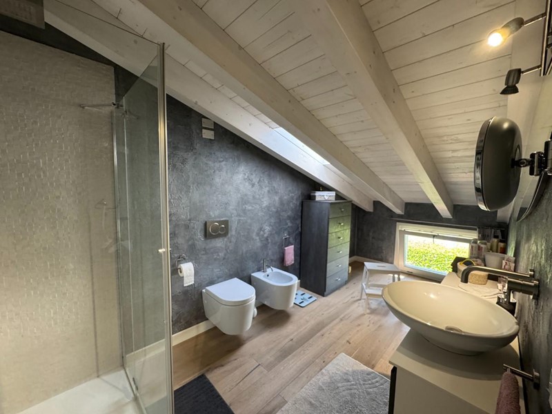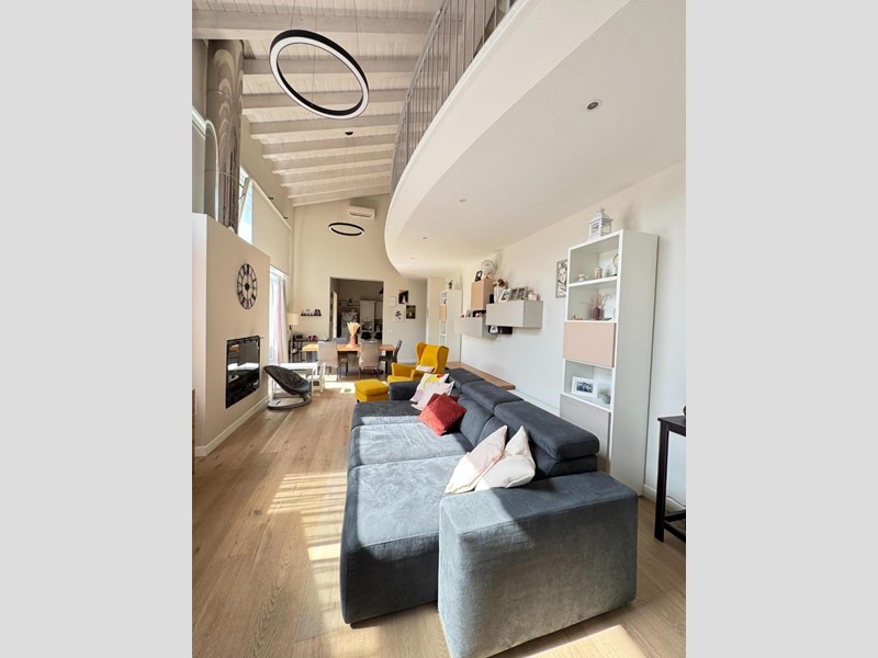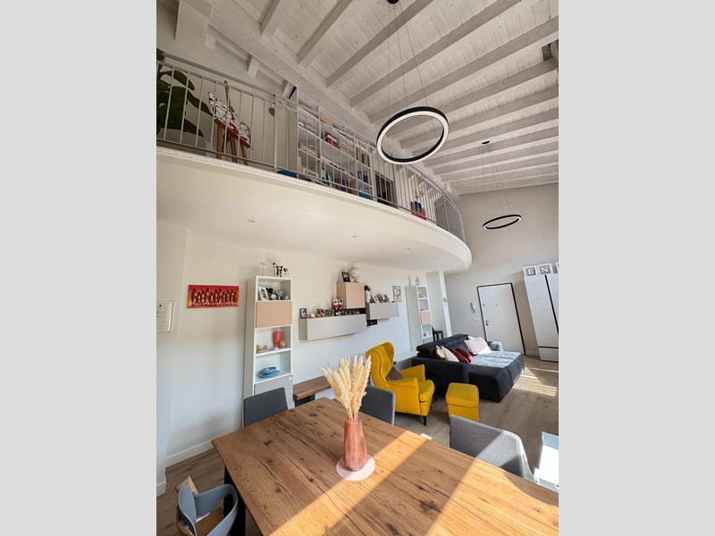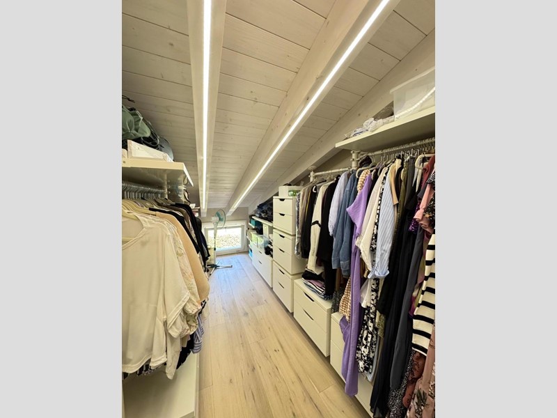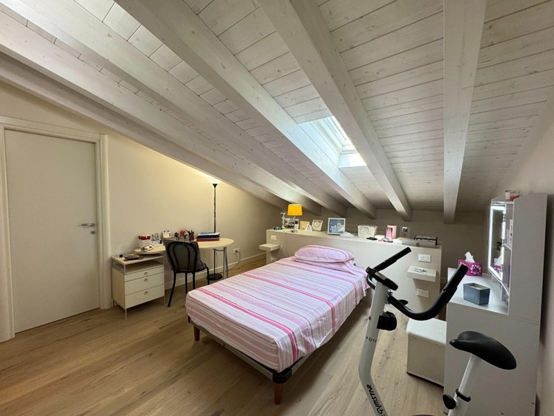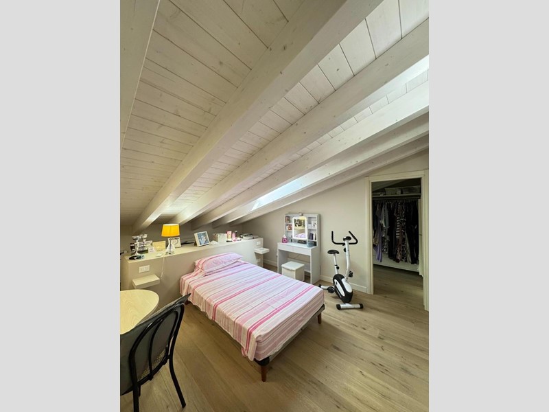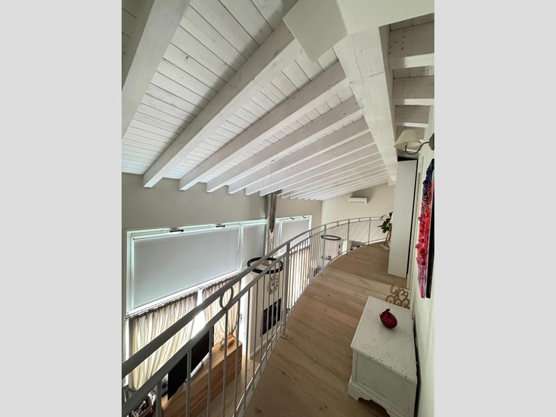 Piano Superiore dove troviamo ulteriore stanza adibita a camera da letto , bagno con doccia e finestrato, e cabina armadio spazio soppalcato di notevoli dimensioni che affaccia sul soggiorno, offrendo continuità visiva tra livelli.