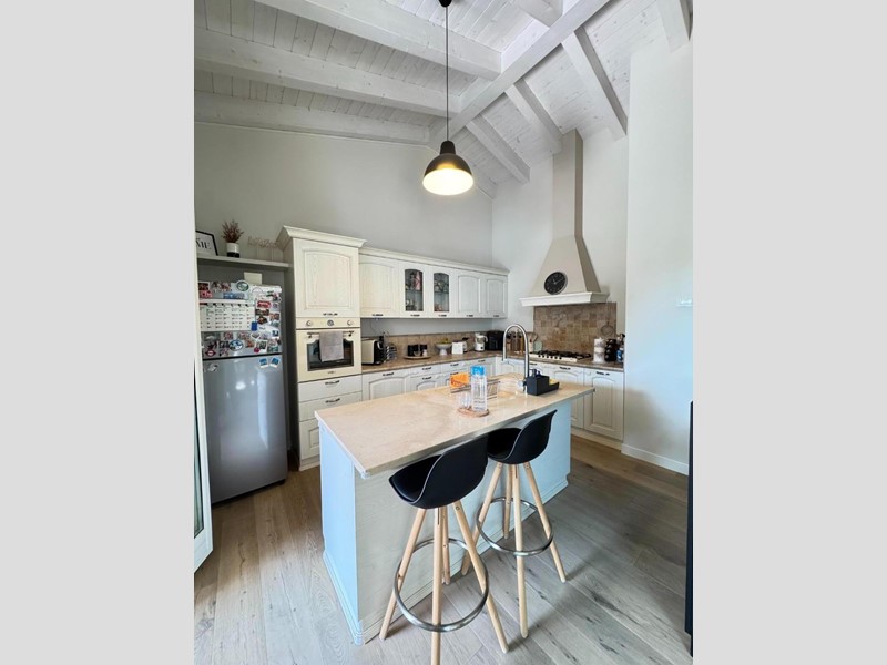 Piano Terra: entrando in questa favolosa bifamiliare troviamo un soggiorno di ampie metrature e con grande luminosità, con termo camino ad aria per comfort immediato; cucina su misura con isola centrale e porta finestra che si aprono sul loggiato, ideale da utilizzare come zona pranzo all’aperto o salotto estivo; 2 camere da letto al piano e splendido bagno rifinito con vasca idromassaggio e doccia oltre a ripostiglio/lavanderia , da comode scale arriviamo al