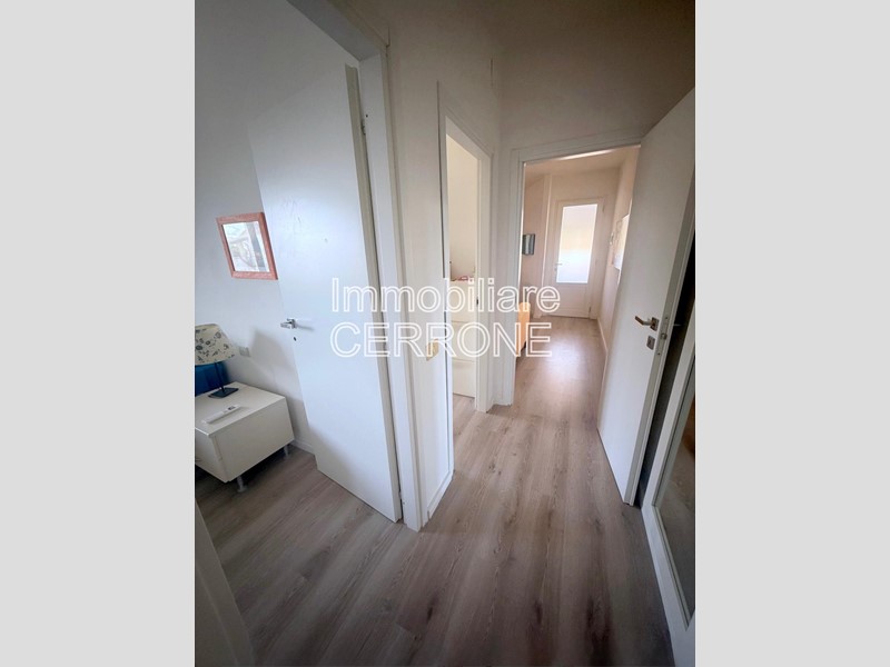 L’appartamento, di circa 60 mq., si compone di una zona soggiorno con cucina a vista, 2 camere da letto, di cui una camera matrimoniale ed una comoda cameretta nella quale poter mettere anche il letto matrimoniale, un disimpegno, ripostiglio, ed infine il bagno finestrato con box doccia.