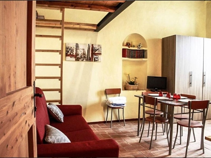 Orgia. - vendesi porzione di casolare di 120 metri composta da monolocale soppalcato con angolo cottura, soggiorno e bagno, sullo stesso piano, appartamento composto da ampio soggiorno con camino, angolo cottura, bagno e ripostiglio, al piano superiore due camere matrimoniali con bagno in camera, completa la proprietà un piccolo resede. L' immobile è in ottime condizioni, luminoso, circondato dalla campagna, con bellissimi panorami ma vicino ai principali servizi. Ideale sia come prima abitazione che come struttura per locazione in quanto è sempre stata adibita a struttura ricettiva.