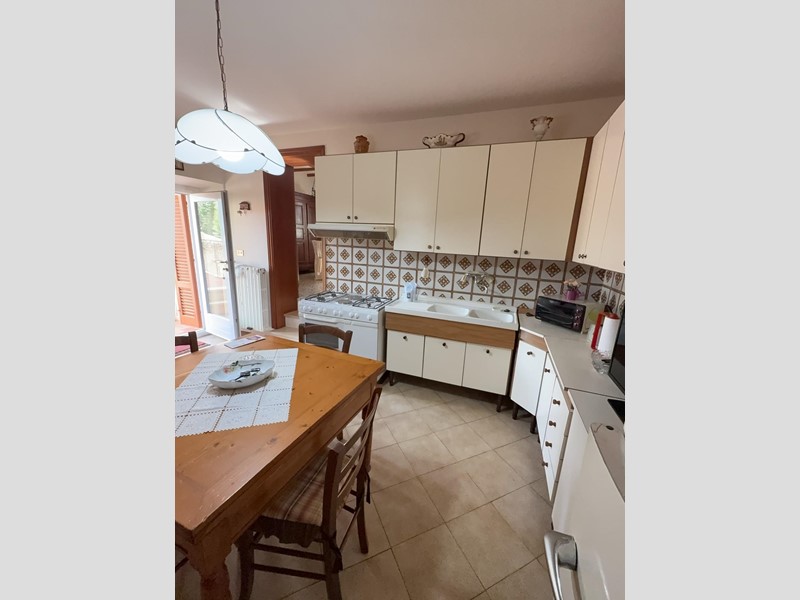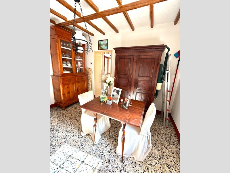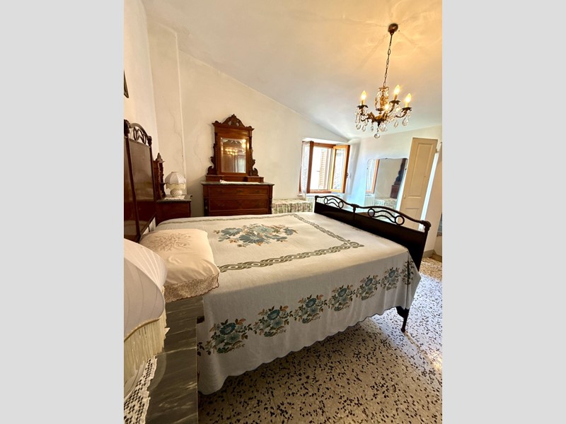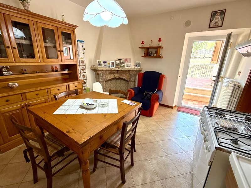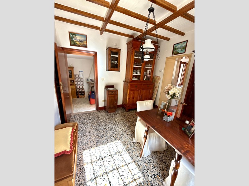 Piano primo: accesso da balcone e scala esterna, ampia cucina con camino funzionante, soggiorno, bagno spazioso con zona lavanderia, camera matrimoniale e ripostiglio.