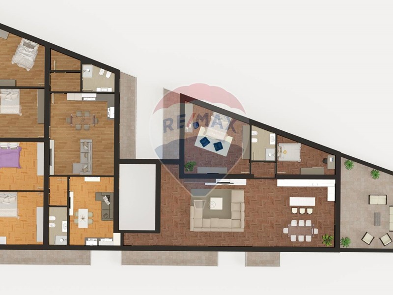 Limmobile è composto da tre unità abitative, rispettivamente di 91 mq, 72 mq e 83 mq, ciascuna con 3 vani e accessori, per un totale complessivo di circa 246 mq. Le soluzioni possono essere utilizzate separatamente, ideali per tre nuclei familiari, oppure unificate con facilità in un unico grande appartamento.