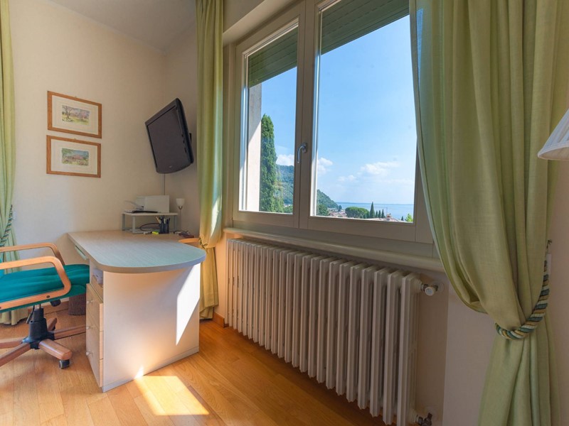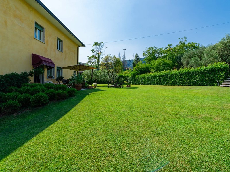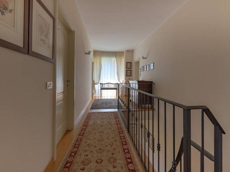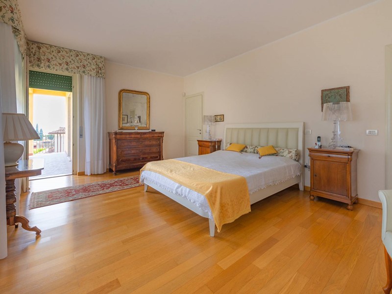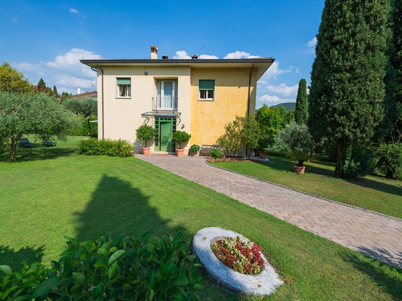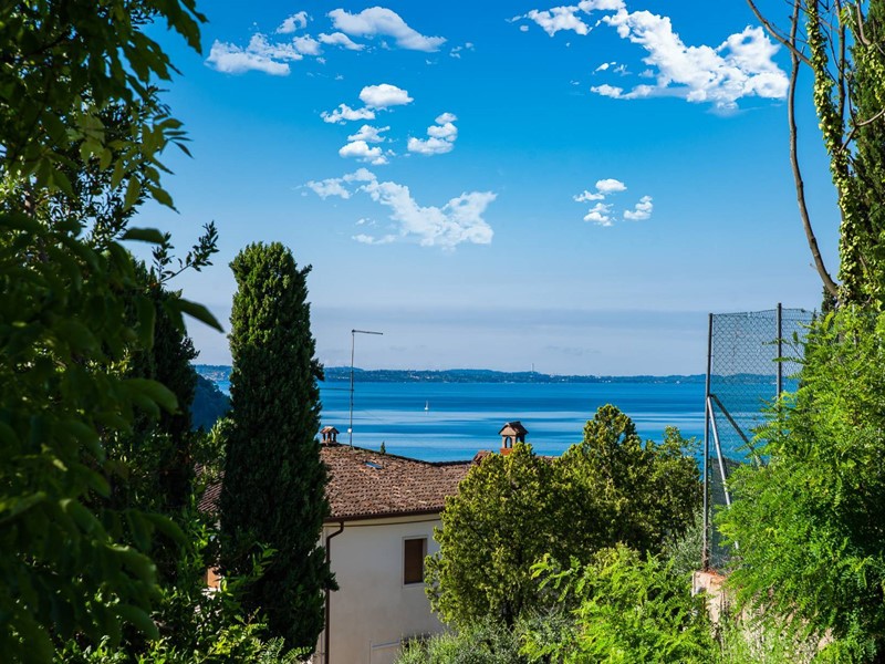 GARDA: Prestigiosa ed esclusiva villa singola con ampio giardino perfettamente piantumato in zona strategica del paese di Garda a soli 400 metri dal centro storico. La posizione e' invidiabile, al termine di una strada privata con pochissime abitazioni limitrofe. Questo rende la zona tranquillissima e senza alcun rumore dovuto al traffico. L'immobile è disposto su due livelli più il piano seminterrato ed e' dotato di magnifiche finiture di altissimo livello, tra le quali il camino in pietra leccese, parquet in legno di rovere nel salotto e nella zona notte, mentre la cucina dispone di una pavimentazione in marmo locale posato senza fughe. Al pian terreno troviamo lo spazioso e luminosissimo soggiorno che apre sul balcone con vista panoramica e sulla splendida rocca di Garda. proseguendo troviamo la sala da pranzo e la cucina abitabile, anch'essa con caminetto funzionante, mobili di pregio e una stanza di disbrigo. Sullo stesso piano abbiamo inoltre lo studio con piccolo bagno di servizio. Salendo al primo piano da una bellissima scala in ferro battuto a mano arriviamo alla zona notte così disposta : ampia camera padronale con accesso sul balcone con vista panoramica. Questa camera è servita da una spaziosa cabina armadio e dal bagno padronale , ottimamente rifinito, con vasca e doccia. Troviamo poi un'altra camera padronale servita da bagno privato con doccia e accesso al balcone. Segue poi la terza camera, anch'essa che apre sul balcone con vista spettacolare. Completano la zona notte con cameretta o disbrigo ed un altro bagno con doccia. Nel seminterrato abbiamo il garage doppio una cantinetta, la lavanderia e il locale caldaia, oltre ad un interessante spazio nel quale è possibile creare la taverna o un secondo appartamento , servito da cucina e bagno. L'esterno presenta un ampio giardino ottimamente tenuto, con possibilità di fare una piscina . A completare abbiamo i due comodi accessi carrai che portano al garage.