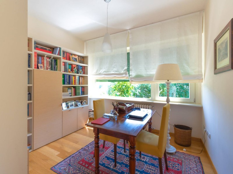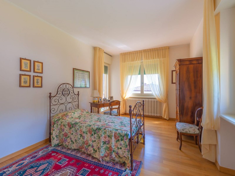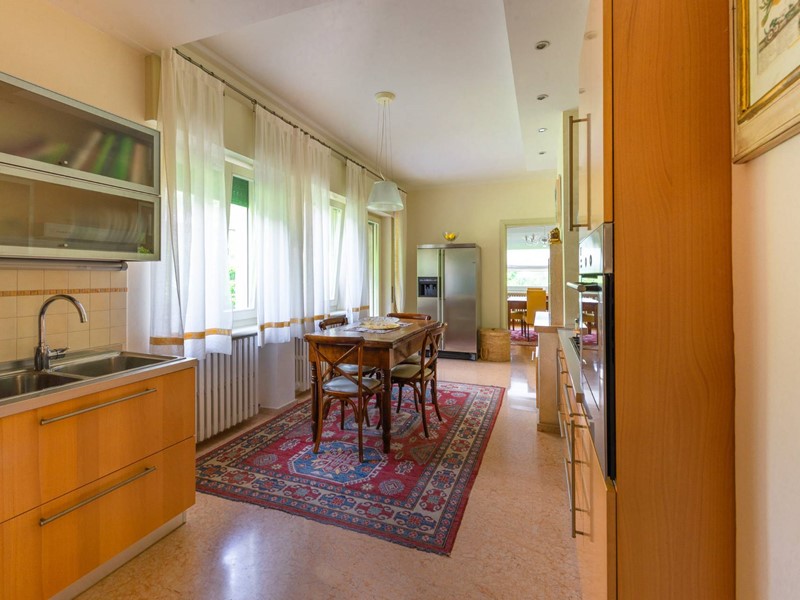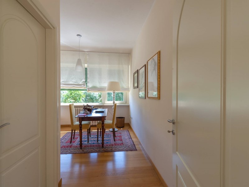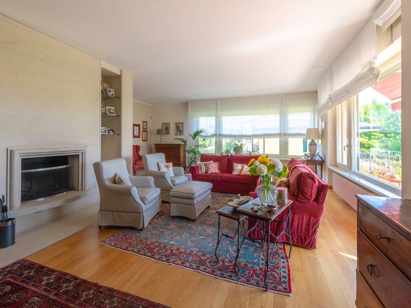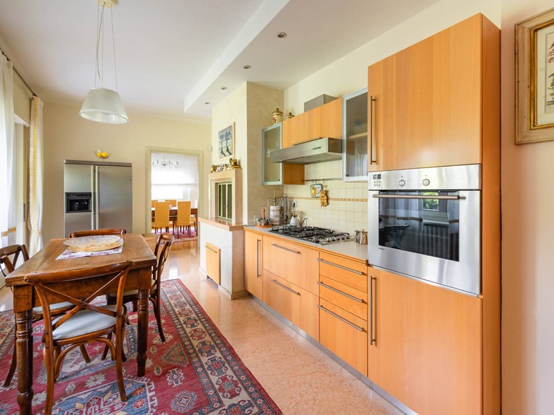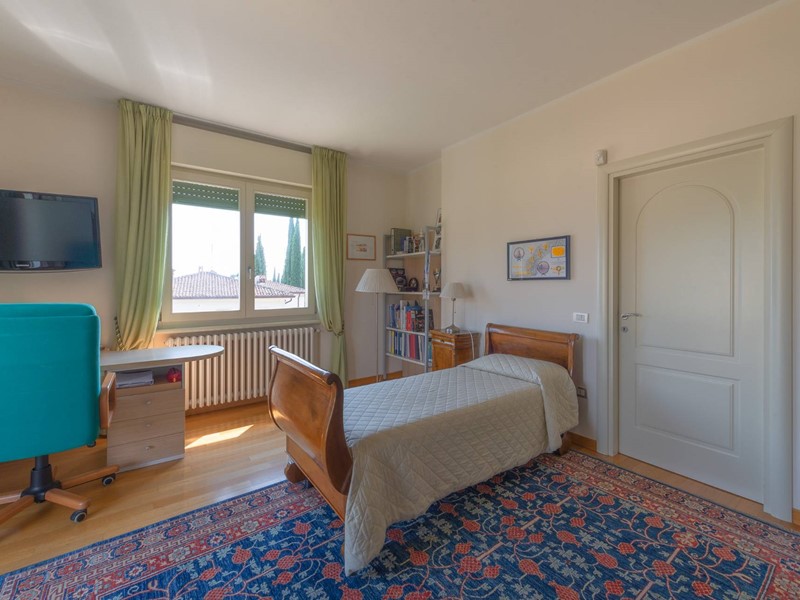 GARDA: Prestigiosa ed esclusiva villa singola con ampio giardino perfettamente piantumato in zona strategica del paese di Garda a soli 400 metri dal centro storico. La posizione e' invidiabile, al termine di una strada privata con pochissime abitazioni limitrofe. Questo rende la zona tranquillissima e senza alcun rumore dovuto al traffico. L'immobile è disposto su due livelli più il piano seminterrato ed e' dotato di magnifiche finiture di altissimo livello, tra le quali il camino in pietra leccese, parquet in legno di rovere nel salotto e nella zona notte, mentre la cucina dispone di una pavimentazione in marmo locale posato senza fughe. Al pian terreno troviamo lo spazioso e luminosissimo soggiorno che apre sul balcone con vista panoramica e sulla splendida rocca di Garda. proseguendo troviamo la sala da pranzo e la cucina abitabile, anch'essa con caminetto funzionante, mobili di pregio e una stanza di disbrigo. Sullo stesso piano abbiamo inoltre lo studio con piccolo bagno di servizio. Salendo al primo piano da una bellissima scala in ferro battuto a mano arriviamo alla zona notte così disposta : ampia camera padronale con accesso sul balcone con vista panoramica. Questa camera è servita da una spaziosa cabina armadio e dal bagno padronale , ottimamente rifinito, con vasca e doccia. Troviamo poi un'altra camera padronale servita da bagno privato con doccia e accesso al balcone. Segue poi la terza camera, anch'essa che apre sul balcone con vista spettacolare. Completano la zona notte con cameretta o disbrigo ed un altro bagno con doccia. Nel seminterrato abbiamo il garage doppio una cantinetta, la lavanderia e il locale caldaia, oltre ad un interessante spazio nel quale è possibile creare la taverna o un secondo appartamento , servito da cucina e bagno. L'esterno presenta un ampio giardino ottimamente tenuto, con possibilità di fare una piscina . A completare abbiamo i due comodi accessi carrai che portano al garage.