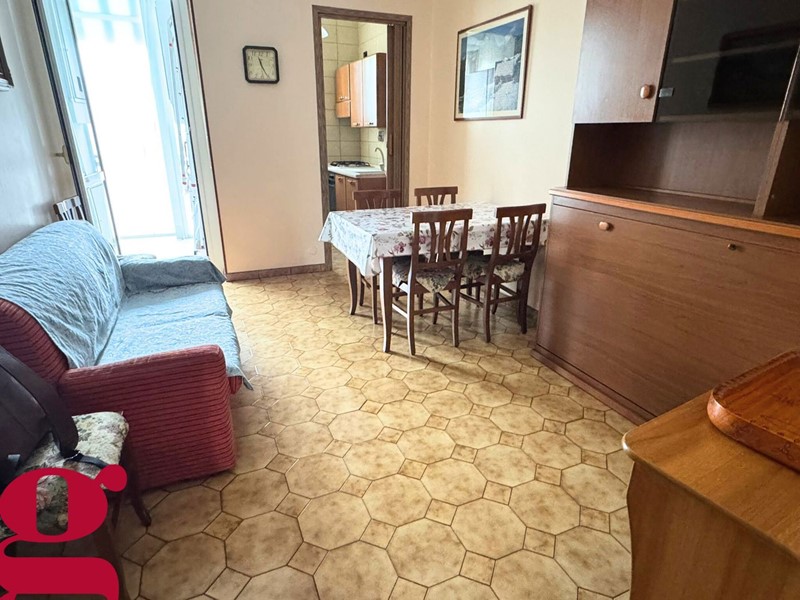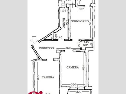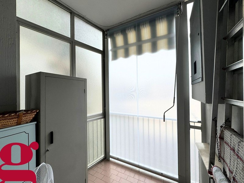 COMPOSIZIONE INTERNA: due arie di esposizione, ampio ingresso, soggiorno con cucinino, due camere, servizio, ripostiglio, due balconi e cantina al piano seminterrato;