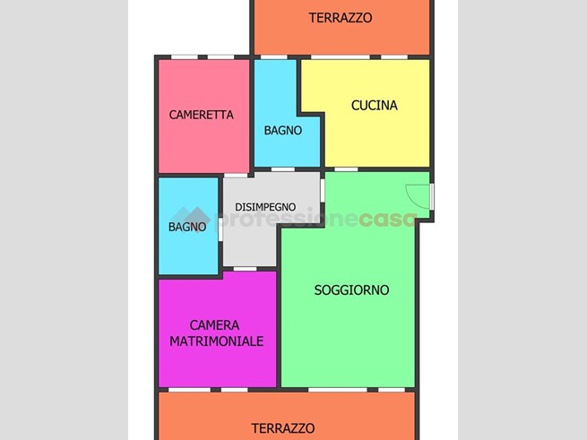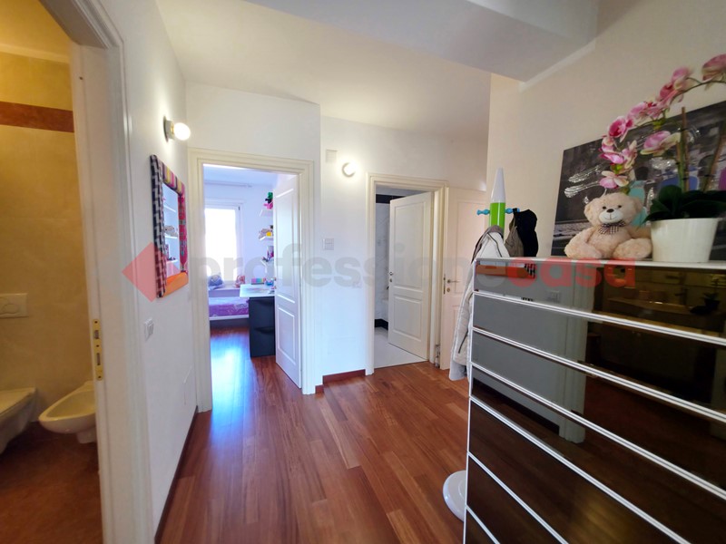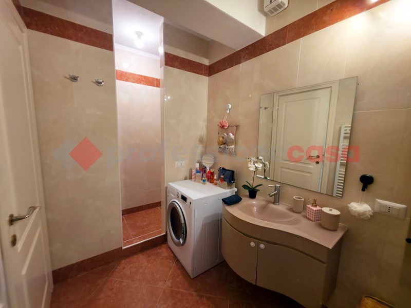 In signorile palazzina di recente costruzione, panoramico e luminoso trilocale di ampie metrature posto al terzo piano così composto: ingresso su spazioso soggiorno con porta finestra che da sul terrazzo di circa 25 mq., cucina abitabile con uscita su un secondo comodo terrazzo, disimpegno, camera matrimoniale con sfogo sul terrazzo, cameretta doppia, bagno padronale e bagno di servizio. Installate tapparelle motorizzate, predisposizione per aria condizionata e impianto di allarme. Annesso alla proprietà box doppio in larghezza di 45mq con collegato locale lavanderia di 15 mq. e posto macchina.