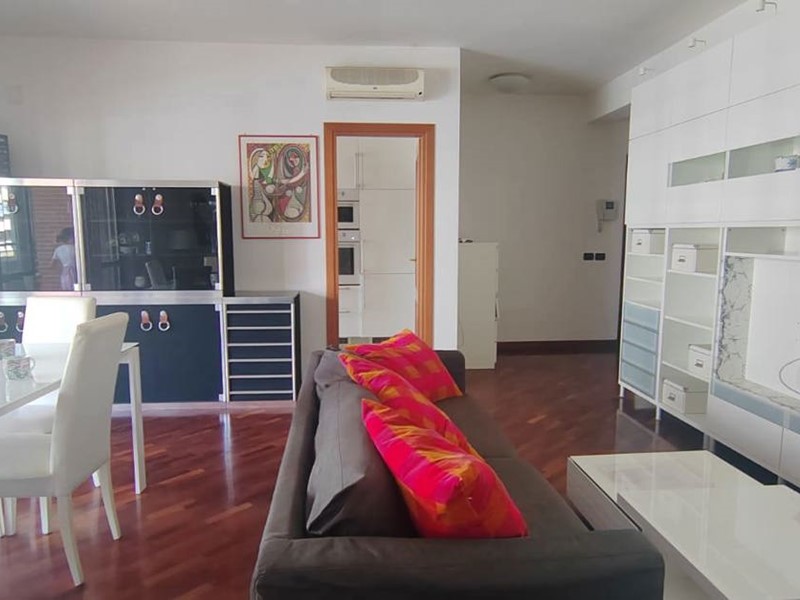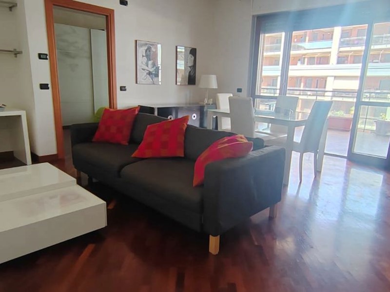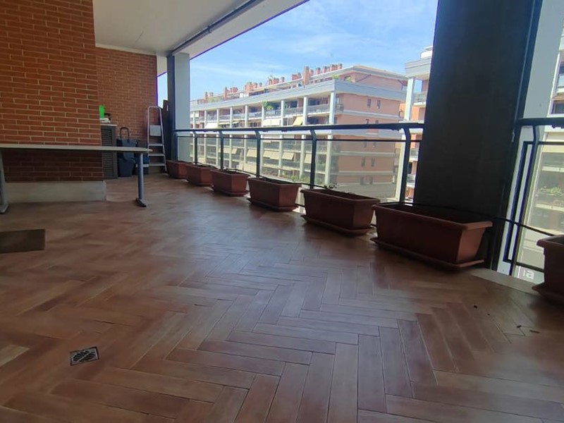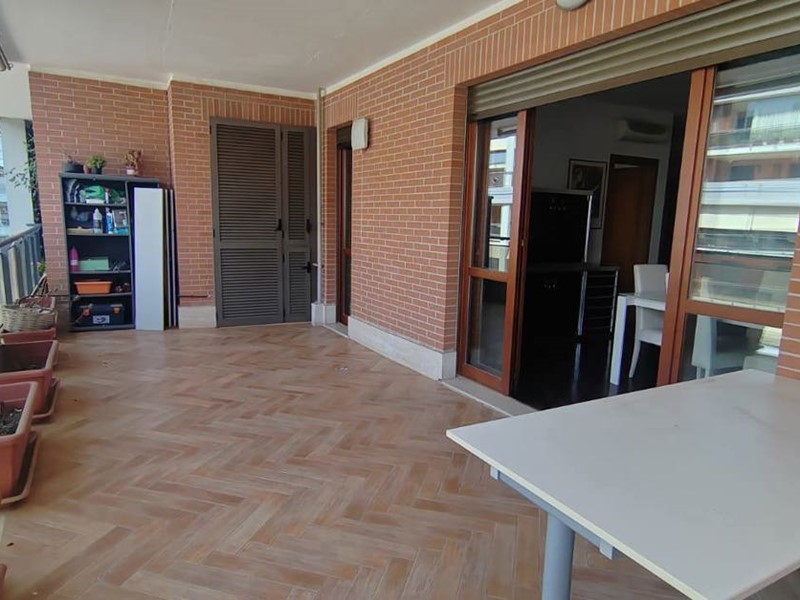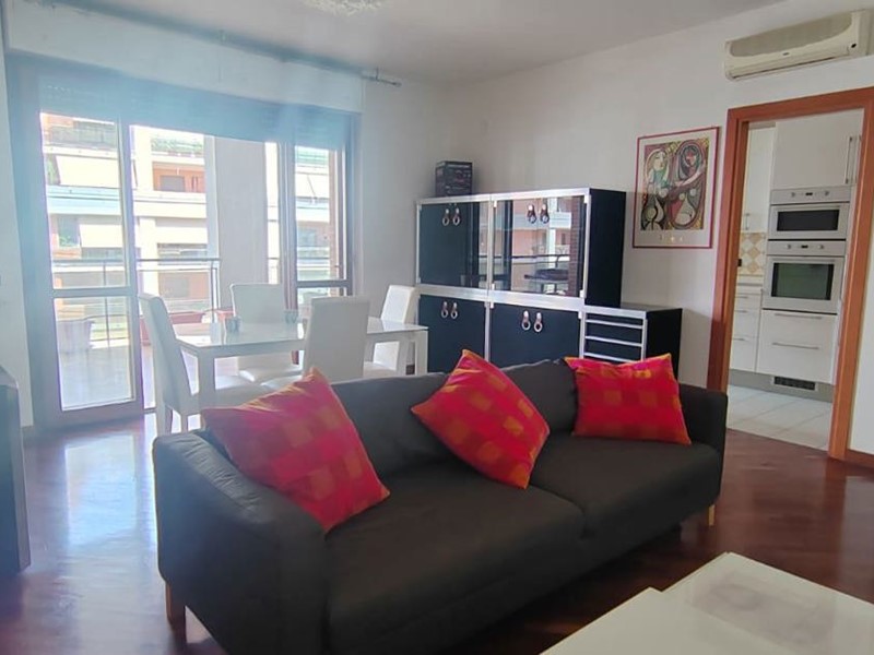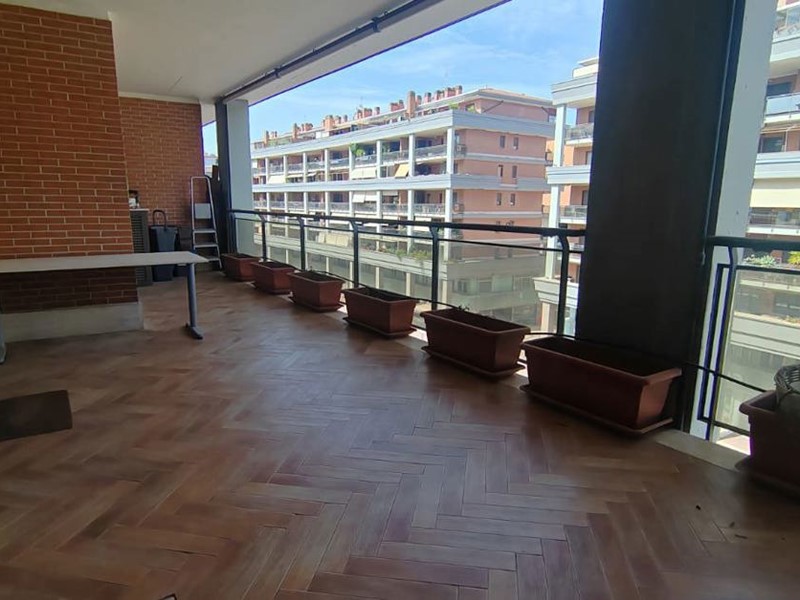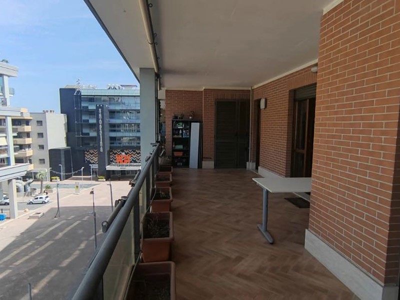 Fiumicino Parco Leonardo, complesso "Athena", in zona pedonale, a due passi dalla stazione del trenino, dal centro commerciale The Wow, cinema e negozi, in palazzina signorile, appartamento al 4° piano, con affaccio sulla piazza, ampio bilocale con ingresso, ampio soggiorno, cucinotto, camera, bagno (interno alla camera, con vasca idromassaggio, cieco), ampio terrazzo mq 26, box auto mq 18.