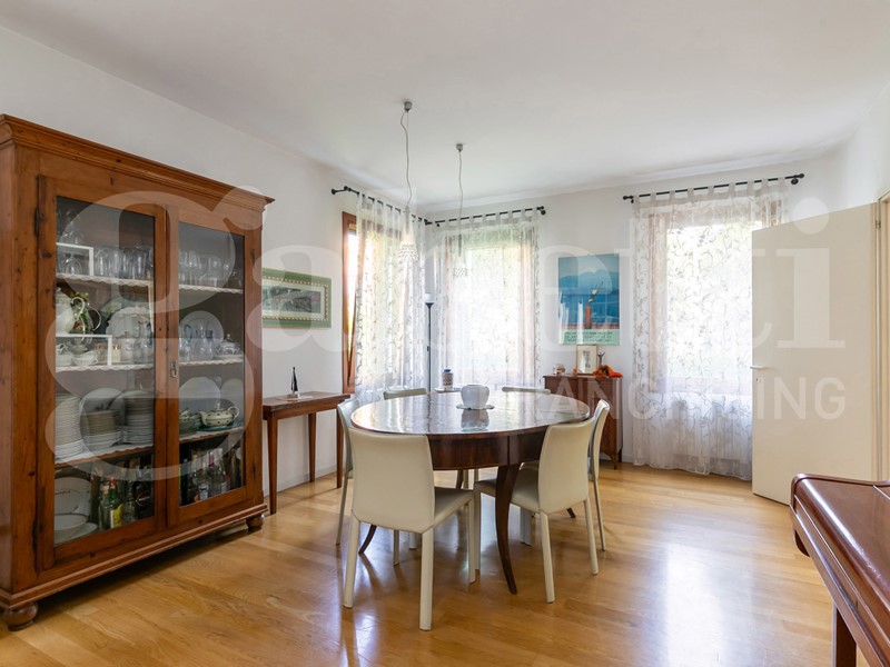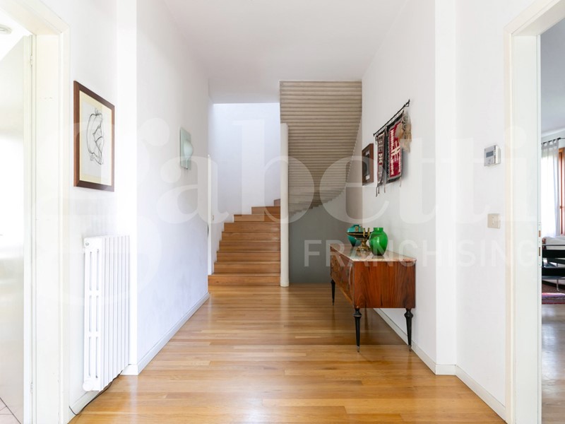 Mogliano Veneto vicinanze centro in contesto residenziale comodo a tutti i servizi, villa indipendente in ottimo stato di manutenzione e con ampio giardino. L'ingresso, introduce al piano rialzato, dove si sviluppano la spaziosa zona living, la cucina abitabile, il bagno finestrato e un comodo magazzino. Al primo piano si trovano due camere matrimoniali, una camera singola e uno studio attualmente adibito a camera matrimoniale, oltre a tre bagni finestrati e due terrazze abitabili. Il piano interrato, è suddiviso in cinque locali versatili, tra cui ripostiglio, lavanderia, disbrigo e magazzino, perfetto da trasformare in taverna, palestra, studio o area hobby. Il piano è collegato internamente ma dispone anche di uscita indipendente verso il giardino. Completano la proprietà il portico esterno ed il garage doppio. Rif. 350