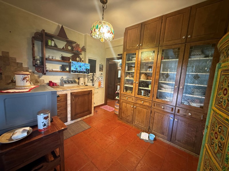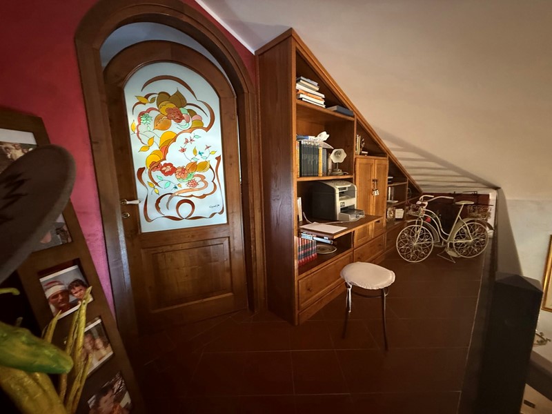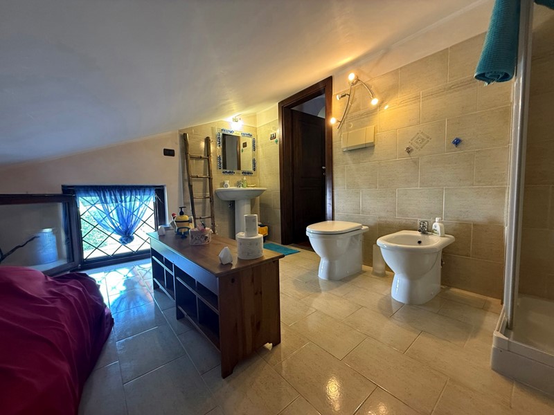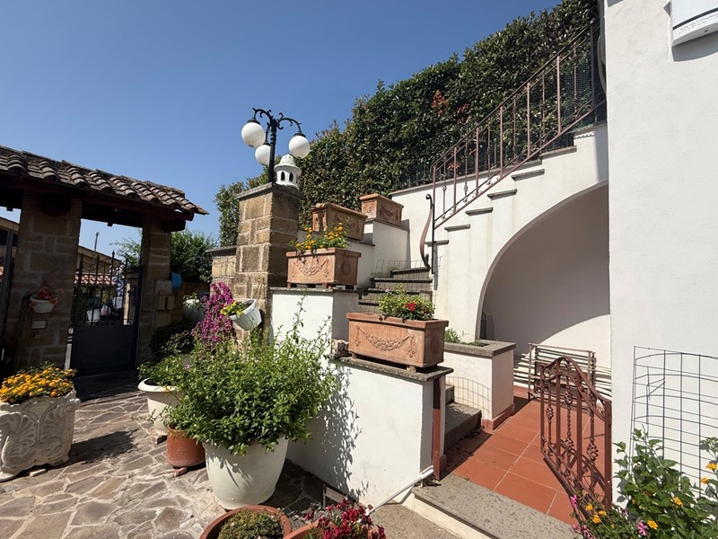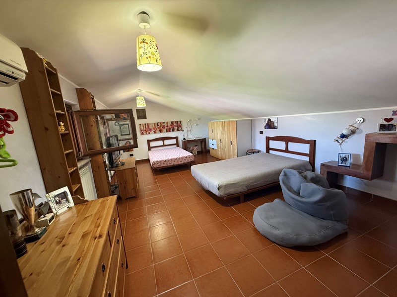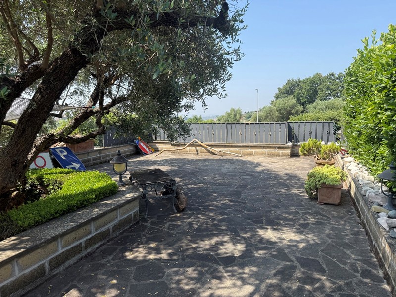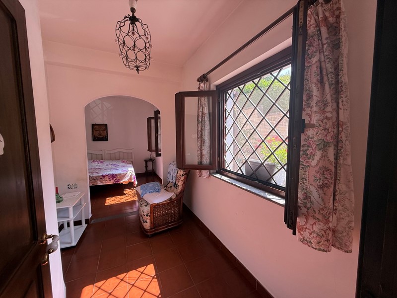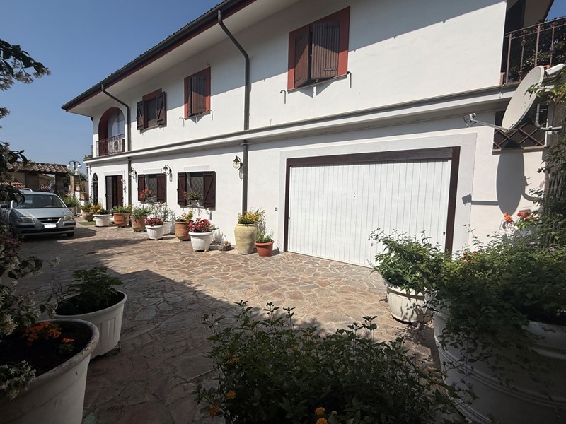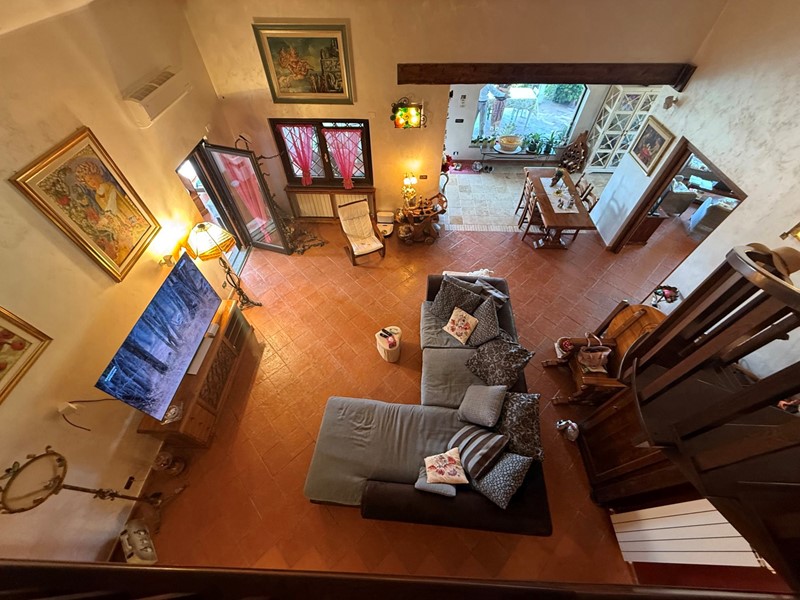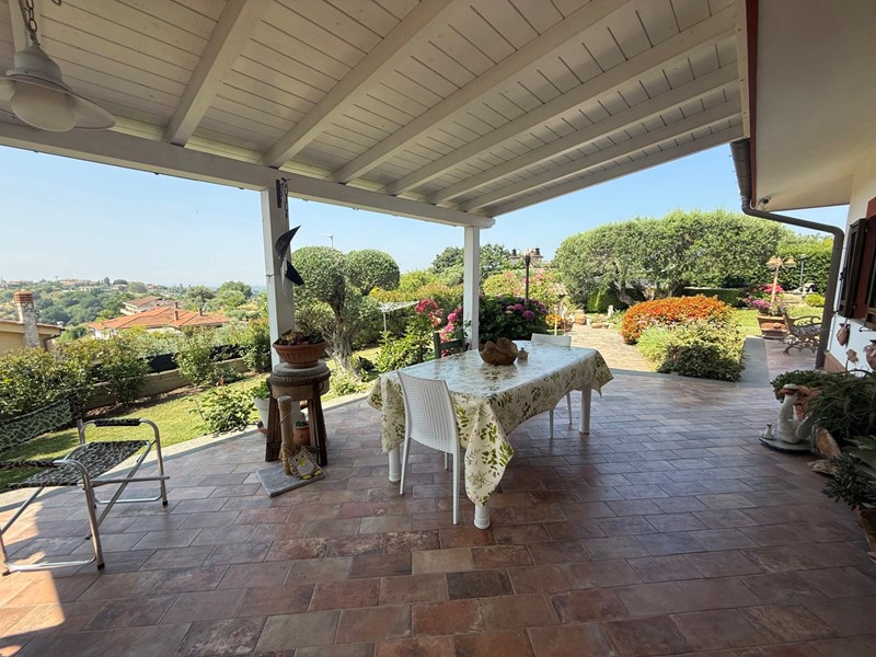 La villa padronale ha l'accesso, sia pedonale che del box doppio, direttamente da Via degli Ulivi, ed è dislocata principalmente su un unico livello al piano terra, di totali mq 190, ed è composto da: ampio salone di rappresentanza con grande cucina abitabile in muratura a vista e camino, dotata di ampie vetrate blindate con affaccio sul giardino, dispensa con accesso diretto al giardino sulla zona barbecue/forno a legna in muratura, portico verandato adibito a palestra con piccolo magazzino adibito a lavanderia, corridoio che divide e collega la zona giorno dalla zona notte, dotato di armadi a muro da entrambi i lati, camera padronale con bagno interno in muratura e vasca idromassaggio, seconda camera matrimoniale e bagno con doccia; il piano primo sottotetto, d totali mq 44, accede da una comoda ed elegante scala in legno, dove troviamo una balconata che affaccia sulla sala attualmente è adibita a piccolo studio, una grande camera doppia con altezza 2,33, ed un bagno con doccia, oltre dei vani sottotetto ad uso ripostiglio. Il box di mq 42, ha l'accesso direttamente su strada da una bascula in legno elettronica, è dotato di acqua, luci di emergenza e portone blindato interno per accedere direttamente nella proprietà. A completare la bellissima zona esterna, dove troviamo un porticato in legno su 3 lati e un incantevole giardino di circa mq 1.700, curato ed attrezzato in ogni minimo dettaglio, dotato di terrazza/solarium ed un bagno esterno con doccia, una vera oasi di relax, pace e tranquillità.