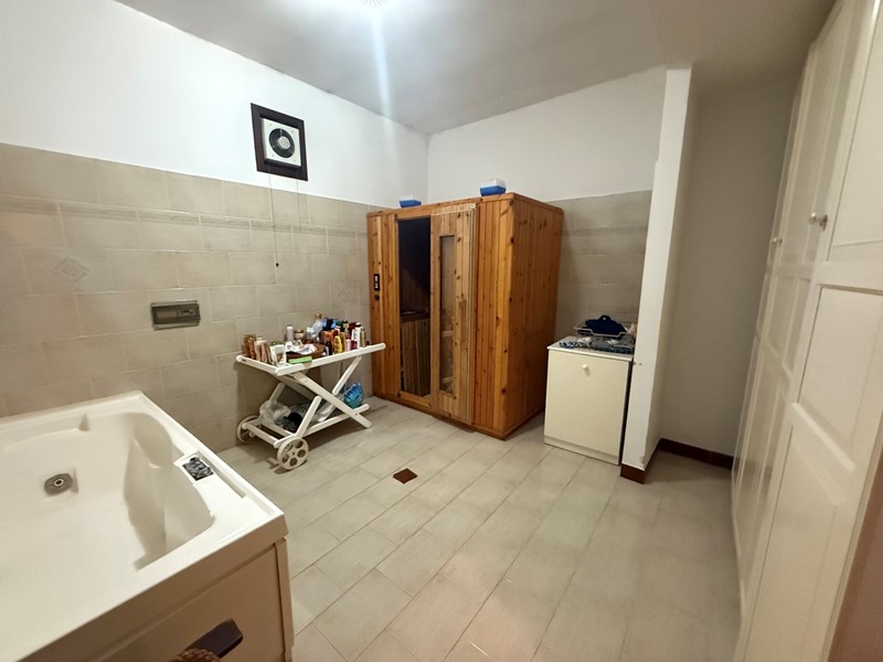 La seconda unità, collegata anche da una scala esterna con la villa padronale, ha l'ingresso indipendente da un cancello carrabile automatico da Via Vallelinda, ed è dislocata su un unico livello al piano terra/seminterrato, di totali mq 212, composta da: salone triplo con camino e cucina a vista in muratura, 2 camere matrimoniali, 2 bagni, lavanderia, solarium, ripostiglio, intercapedine praticabile e box di mq 49 con bascula elettronica. A completare corte esclusiva pavimentata di mq 200.