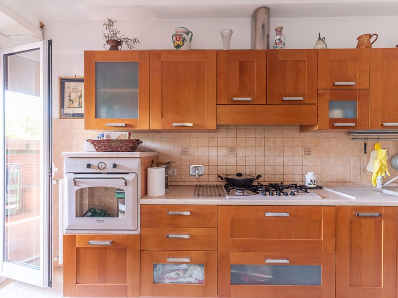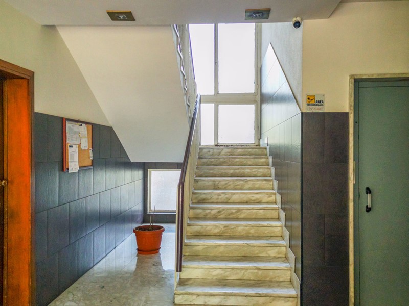 La comoda metratura è composta da ingresso su soggiorno con zona pranzo, cucina separata con porta scorrevole, entrambi gli ambienti con ampie finestre ed affaccio diretto sul panoramico terrazzo, disimpegno per il primo servizio ed il ripostiglio, due ampie camere da letto, di cui una con terrazzo con vista, un secondo bagno finestrato.