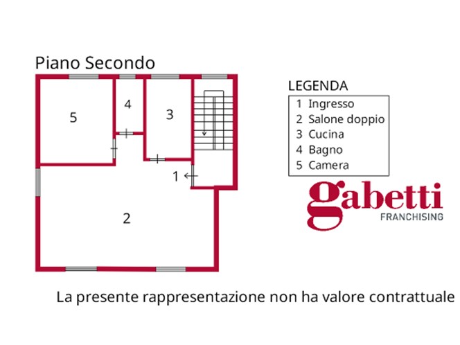 - 3 livello (piano secondo mansardato): ingresso con porta di caposcala, salone doppio, cucina, camera e bagno.