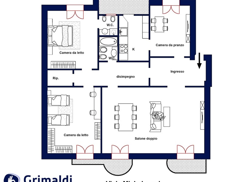 GRIMALDI MUSEO- AGENZIA NAPOLI CENTRO-  Propone in vendita appartamento di 140 mq commerciali, arricchito da due balconate situato al secondo piano di uno stabile signorile dotato di ascensore e servizio di portierato. L'immobile è così composto: