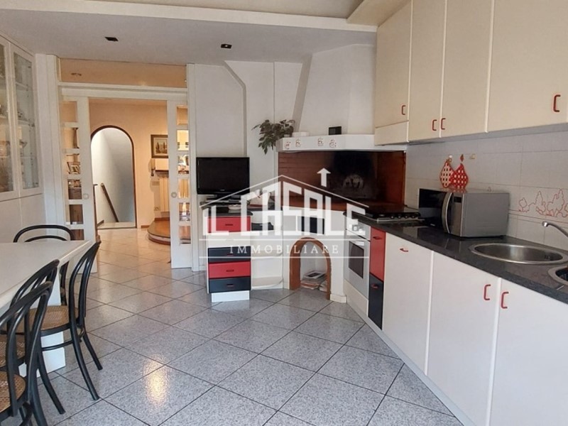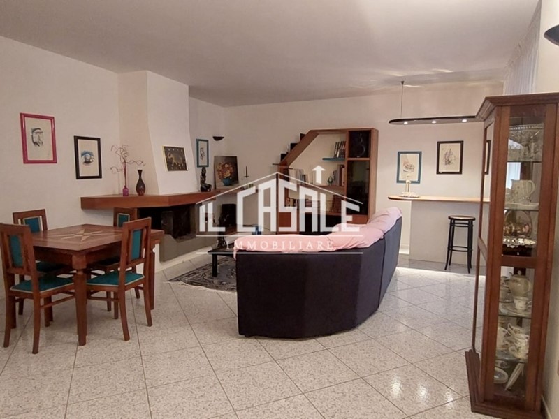 Ingresso ampio per accedere al cucinone dove oltre ad una spaziosa cucina si trova anche camino-bistecchiera e balcone con comodo pilozzino, ripostiglio-guardaroba con zona lavanderia e bagno di servizio. Con scala rivestita in legno si sbarca nell'enorme salone con angolo bar e camino, tre camere matrimoniali e spaziosissimo bagno con vasca idromassaggio. Salendo ulteriormente mansarda arredata e luminosa, accessoriata di terrazza a tasca abitabile con forno a legna. Termosingolo con Ipe in elaborazione. rif. 2-2185 €220.000,00