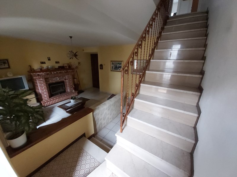 - al 2° livello, un terrazzo con l'ingresso principale, dove troviamo un ampio soggiorno con camino, una cucina abitabile separata, una camera matrimoniale, un secondo piccolo soggiorno/studio, un bagno con doccia adatto anche a persone con disabilità e un altro ingresso, dove troviamo il locale caldaia e una scala interna, che dà accesso al piano superiore adibito a soffitta e ripostiglio;