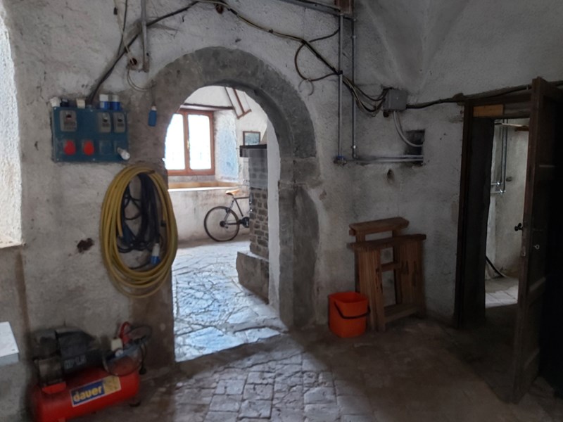 - al 1° livello, ampia cantina corrispondente al perimetro della casa, con soffitti a volta;