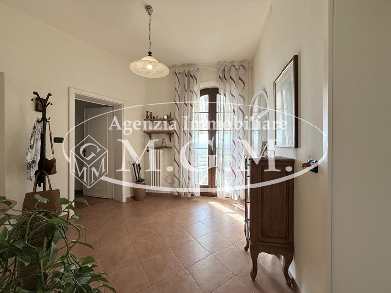 La zona giorno, luminosa e accogliente, è composta da soggiorno-pranzo con angolo cottura su misura e camino angolare, da cui si gode una suggestiva vista panoramica sulla pianura pisana. La zona notte comprende una camera matrimoniale, una camerina, un bagno finestrato con doccia e un comodo ripostiglio.