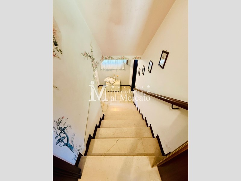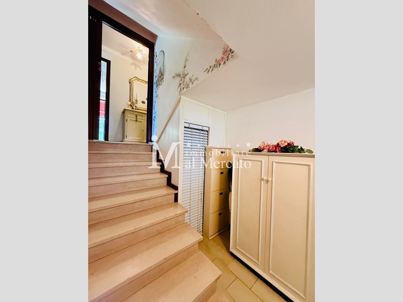 Torniamo su ed al piano rialzato raggiungiamo una bel soggiorno (con H 2.80) luminoso con ampio balcone con accesso diretto al giardino.