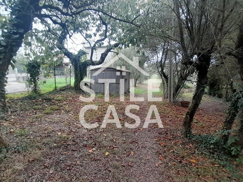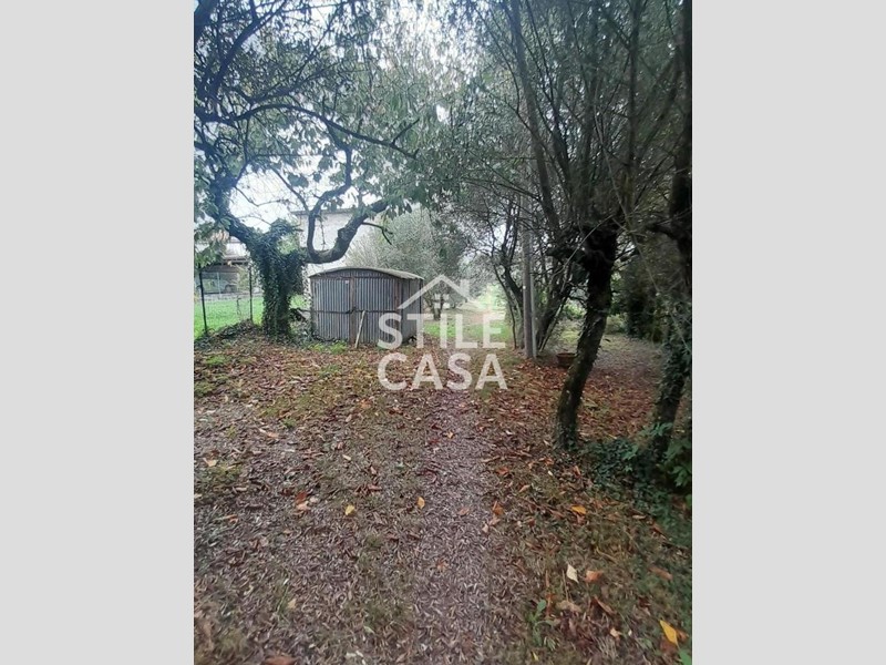 sul retro della casa poco discosto e separato da strada di corte troviamo giardino privato di 220 mq circa sul quale insiste un fienile ad uso garage e una tettoia.