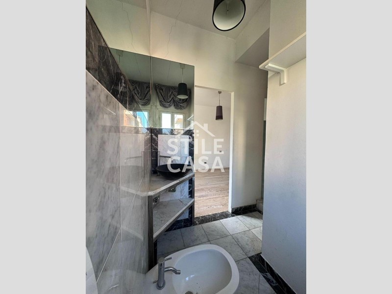 Al piano superiore è composto da un ampia camera matrimoniale con un bagno raffinato, impreziosito da una doccia a vista con parete in cristallo.
