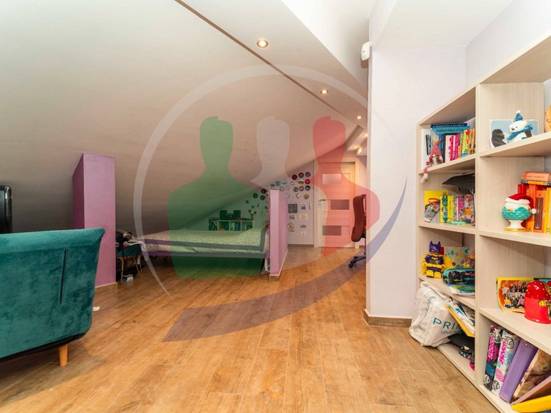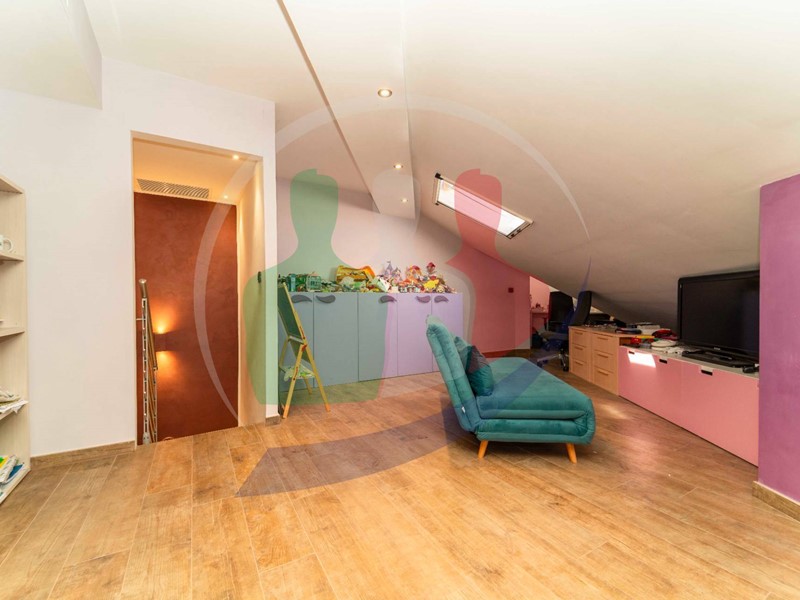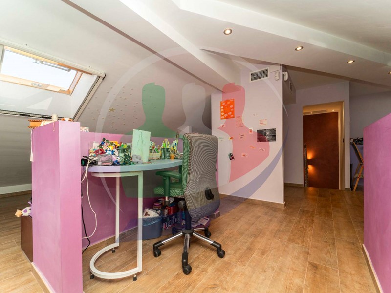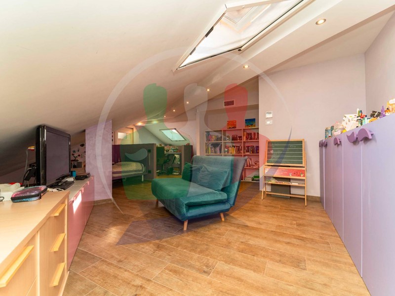 Al piano mansardato, collegato internamente, ambiente open-space completamente rifinito e locale di servizio.