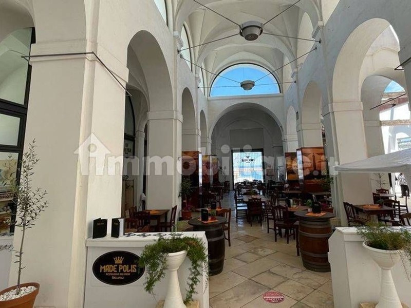 All'ingresso dello splendido centro storico di Gallipoli, collocata nel celebre Castello, dove un tempo vi era il mercato coperto, si vende attività commerciale attualmente adibita a pizzeria, bar e rivendita di prodotti tipici. L'attività si estende su una superficie di circa 300 mq ed ha sede all'interno del castello aragonese, adiacente al ponte d'ingresso al centro storico, di proprietà del Comune, grazie al quale l'attività gode di ottimo contratto di locazione a lungo termine; dispone di sala, cucina, bar, negozio tipico e deposito su soppalco.