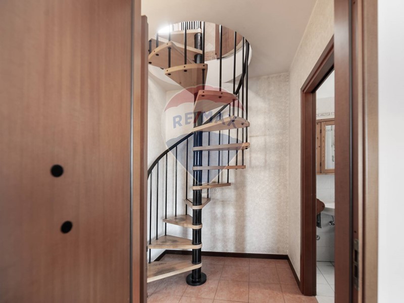 La soluzione è dotata di due ingressi indipendenti accessibili dal vano scala condominiale e serviti da ascensore: uno al terzo piano e uno al quarto piano. Inoltre l'appartamento è collegato internamente da una comoda scala a chiocciola.