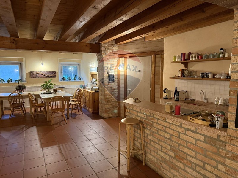 La casa padronale, con una superficie di oltre 550 mq catastali, si sviluppa su 3 piani. Al piano terra lo splendido soggiorno, con la cucina arredata su misura e numerosi spazi di servizio e accoglienza.