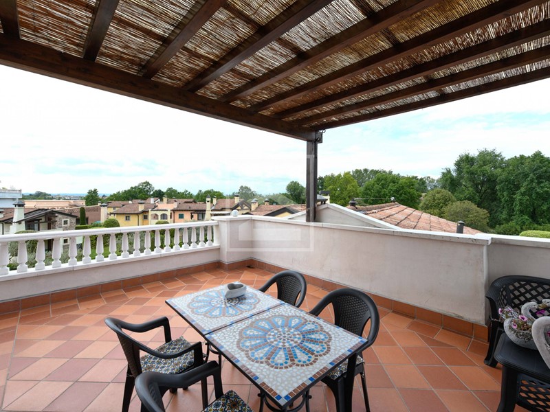 L'appartamento si trova al secondo e ultimo piano. La zona living è molto ampia con angolo cucina finestrato; la portafinestra molto grande reca luminosità all'appartamento e permette l'accesso alla terrazza. Terrazza è di 25 mq è attrezzata con barbecue, ideale per pranzare all'aperto e godersi la bella stagione con magnifica vista sulla piscina e tramonto.