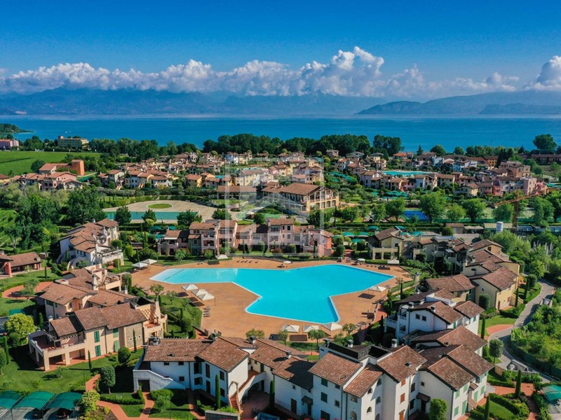 Trilocale con terrazza panoramica libera su tre lati all'ultimo piano al Garda Resort Village, uno splendido residence con un enorme parco, piscine, ristorante e una vasta gamma di strutture sportive e ricreative.Una stupenda soluzione per le vostre vacanze al lago.