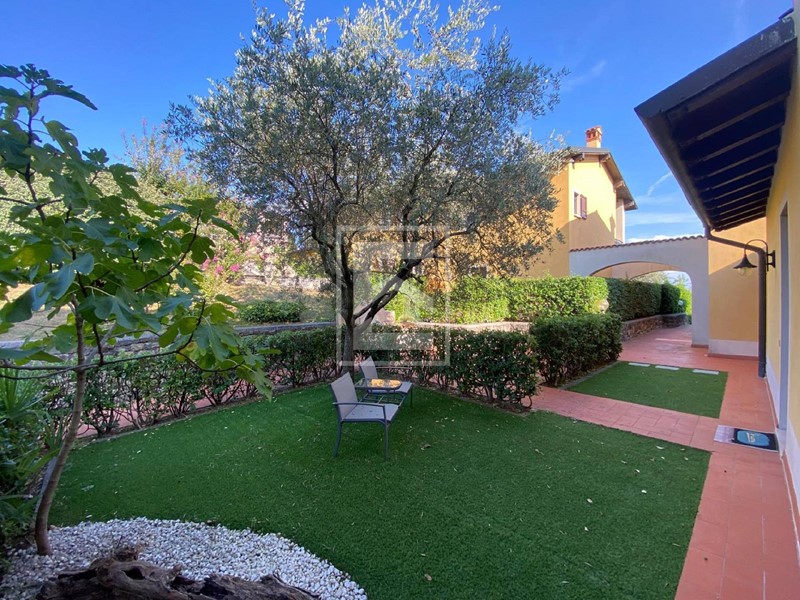 A Soiano del Lago, allinterno di un elegante residence di sole quindici unità abitative con ampia piscina condominiale, proponiamo in vendita un appartamento di testa con giardino privato sia sul fronte che sul retro.