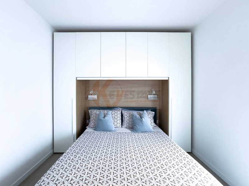 Troverai già inclusi due armadi a ponte su misura, i quattro condizionatori e lo scaldabagno a pompa di calore. Una casa pronta ad accoglierti senza pensieri.