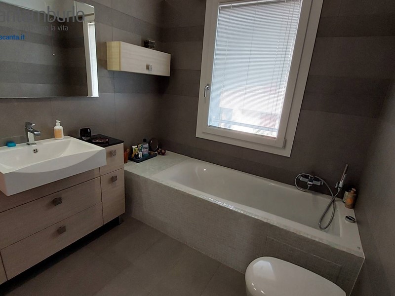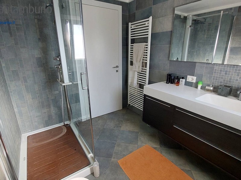 Trattasi di abitazione ampia e posta in zona residenziale adatta anche a due nuclei famigliari con ingressi indipendenti, ma comunque comoda a tutti i servizi principali e così composta: Piano Primo h cm 270 mq 132 : ingresso, ampia soggiorno-salotto-angolo cottura con terrazzo mq 18, ripostiglio-bagno, disimpegno, camere matrimoniale con terrazzo mq 4, bagno con vasca, camera due letti, camera grande, accesso al piano terra con scala interna. Piano Terra h cm 240 mq 132 : 2 ingressi dallesterno, garage-stanza multiuso, scala cantina, locale caldaia-lavanderia, ripostiglio, bagno con doccia grande, taverna-cucina, giardino con zona barbecue e magazzino. Piano interrato h cm 233: cantina con bocche di lupo mq 20.L'unità immobiliare è stata completamente ristrutturata nel 2011, e dotata di: impianto riscaldamento a pavimento, condizionamento, pavimento in rovere massiccio spazzolato, capotto esterno, impianto solare con accumulo 300 litri, fotovoltaico 3 kW con incentivo GSE, allarme perimetrale e volumetrico, serramenti in pvc banchi, tapparelle elettriche, porte bianche, canna fumaria in soggiorno, impianto irrigazione, robot per taglio erba, si presente in ottimo stato manutentivo, completa di arredo. Disponibile altra casa nel nostro sito www.scanta.it e in agenzia.